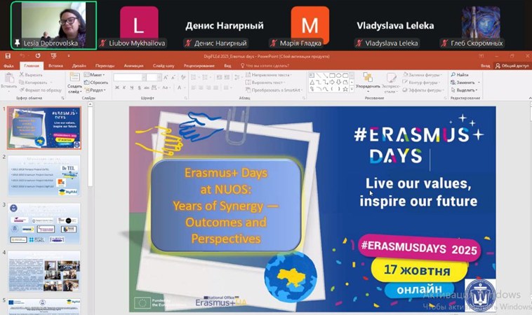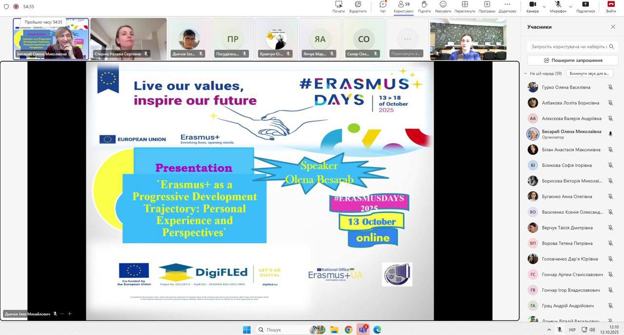 On 13 October, the Department of English Language for Non-Philological Specialties hosted an online presentation “Erasmus+ as a Progressive Development Trajectory: Personal Experience and Perspectives.” The event brought together students, lecturers, and colleagues from partner universities.
