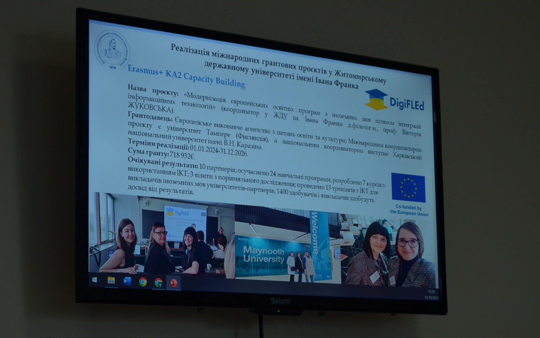 Associate Professor Lesia Dobrovolska presented the outcomes of the Erasmus+ DigiFLEd project, highlighting the creation of new courses, the integration of digital technologies into foreign language teaching, and the launch of virtual centres for professional development.