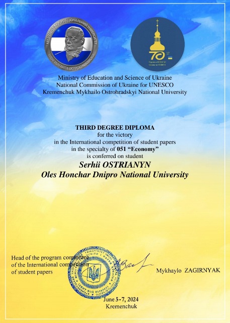 Для факультету економіки Дніпровського національного університету імені Олеся Гончара червень 2024 року виявився щедрим на студентські наукові досягнення – наші студенти отримали ще дві перемоги у конкурсах наукових робіт.