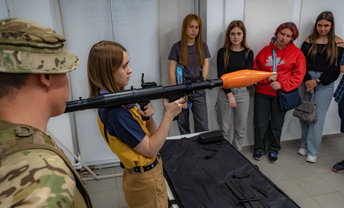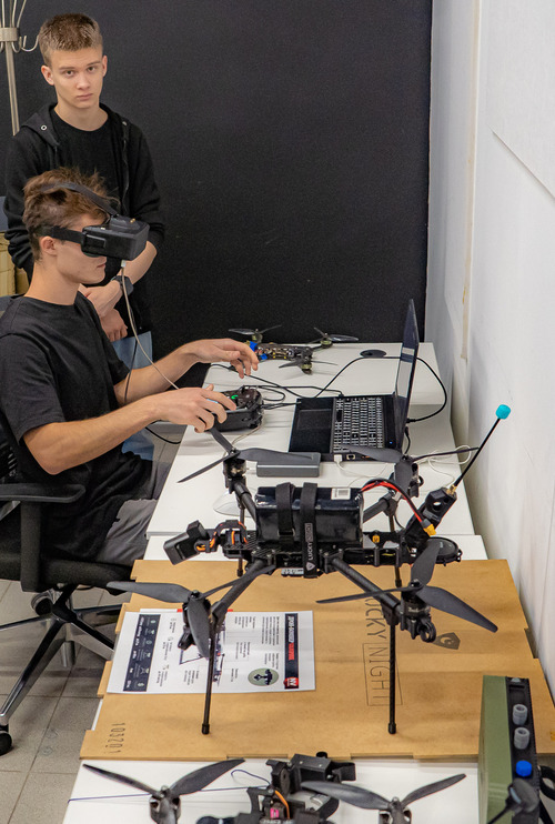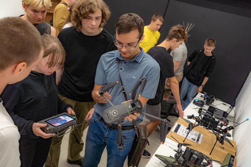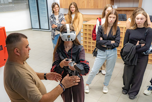 Далі військовослужбовці 25-ї окремої повітрянодесантної бригади розгорнули й продемонстрували присутнім зразки та особливості роботи з безпілотними апаратами. Охочі змогли спробувати свої навички на різноманітних тренажерах і симуляторах. Студентів цікавили технічні характеристики, призначення, особливості застосування різних безпілотників. Посилений інтерес у студентів викликав тренажер, за допомогою якого відпрацьовуються навички застосування стрілецької зброї проти безпілотників противника. Ще на двох навчальних локаціях військовослужбовці-інструктори представили студентам симулятори застосування протитанкових засобів: РПГ7 та АТ4 СS HP, де слухачі могли спробувати власні сили за допомогою сучасних диджитальних інтерактивних засобів відпрацювання різних навичок.