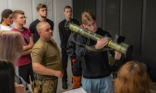 На зустріч також запрошувалися студенти 2 курсу університету, які щойно приступили до вивчення Базової загальновійськової підготовки і мали можливість на практиці відчути особливості застосування окремих видів зброї за допомогою тренажерів та симуляторів. Дякуємо нашим Захисникам, які знаходять час виконувати функції стейкхолдерів у справі підготовки молоді, здатної дати відсіч ворогу на інтелектуальному полі й на полі бою.