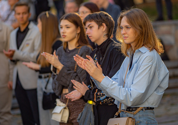Привітати нове покоління здобувачів освіти у великій дружній родині ДНУ зібралися керівники, викладачі, старшокурсники та стейкхолдери університету. Для наших першокурсників того теплого вересневого вечора пролунало, насамперед, багато урочистих напутніх слів. Святкову атмосферу зібрання доповнили й вокальні й танцювальні виступи від творчих колективів Палацу культури студентів. Академічна й креативна команди ДНУ зробили усе, аби цікаво замотивувати й яскраво прикрасити старт цьогорічних першокурсників у бурхливе студентське життя в Alma mater!