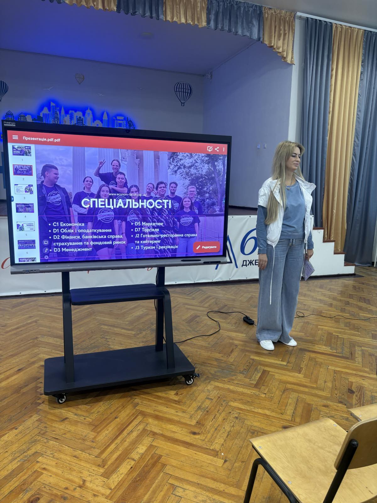 Під час зустрічі представники кафедр факультету ознайомили ліцеїстів із переліком спеціальностей, за якими здійснюється підготовка здобувачів вищої освіти в ДНУ. Викладачі розкрили особливості кожної освітньої програми, наголосили на їхній практичній спрямованості та актуальності в сучасних умовах, а також підкреслили високий попит на фахівців економічного профілю на ринку праці.