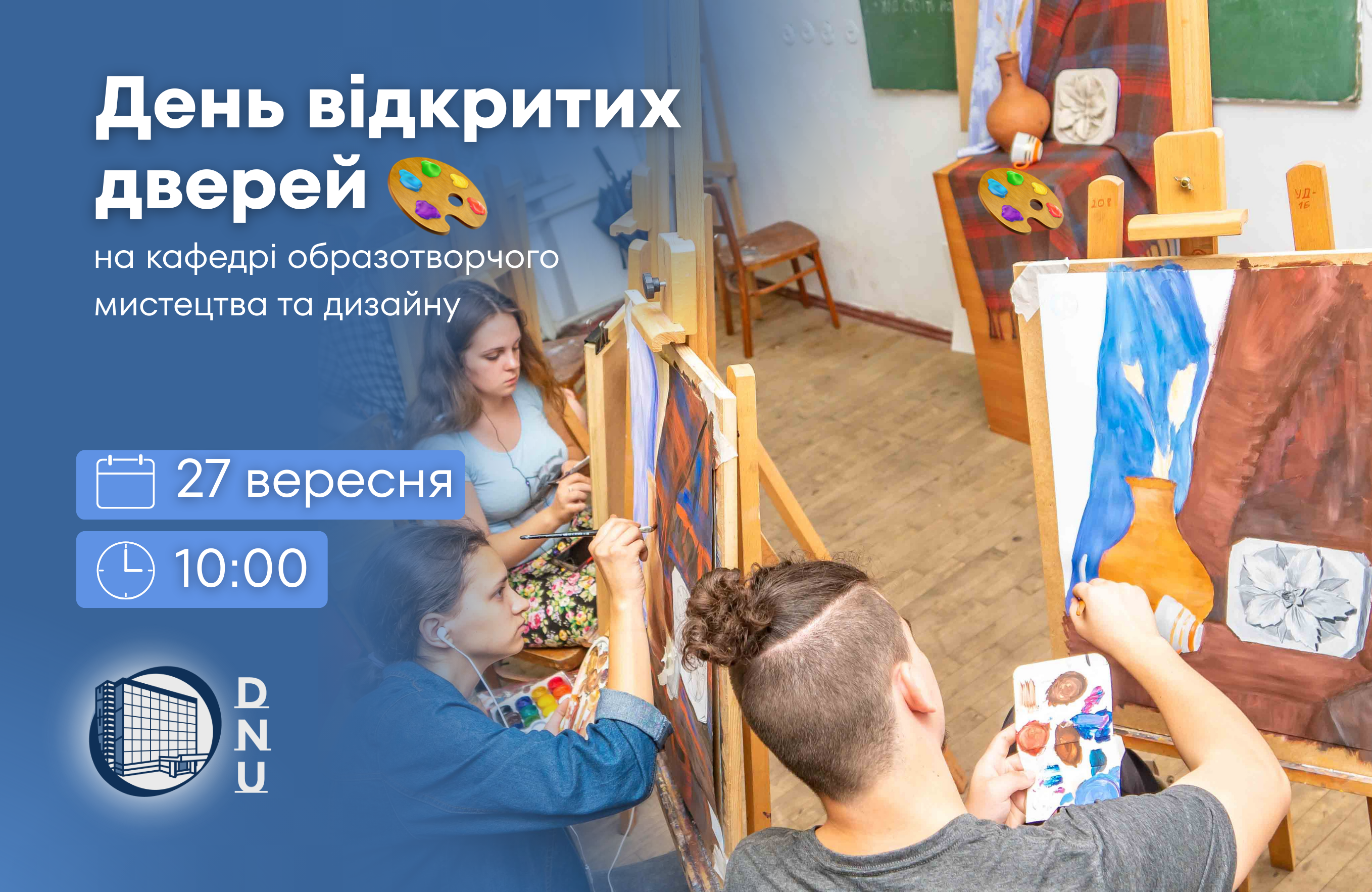 Кафедра образотворчого мистецтва та дизайну ДНУ 27 вересня о 10:00 проводить для творчої креативної молоді ДЕНЬ ВІДКРИТИХ ДВЕРЕЙ!