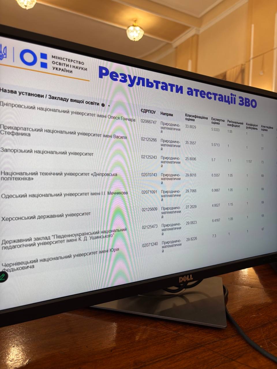 2 жовтня Міністерство освіти і науки України оголосило чергові підсумки державної атестації наукових установ та закладів вищої освіти у частині провадження наукової (науково-технічної) діяльності за двома напрямами: «Природничо-математичний» та «Інженерно-технологічний» – найбільшими за обсягом і за впливом на розвиток та відновлення країни.