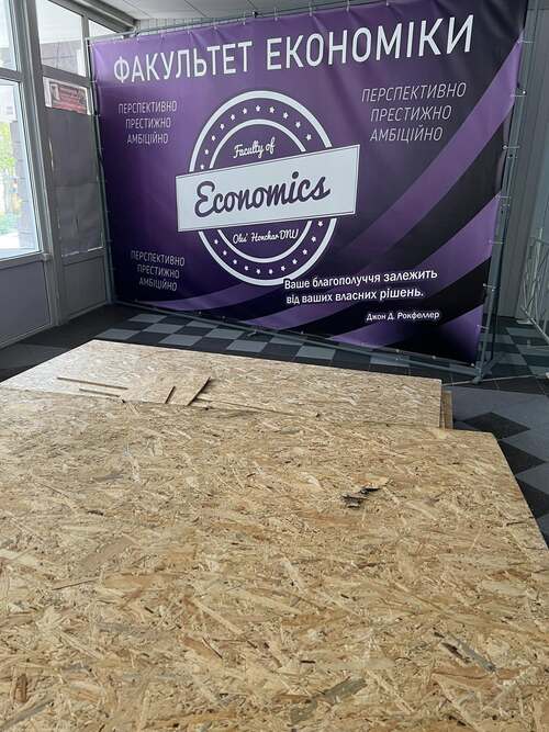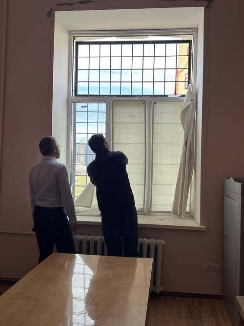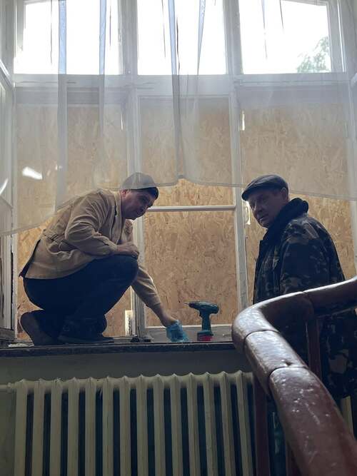 Служби адміністративно-господарчої частини розпочали роботи із закриття віконних отворів одразу в усіх уражених корпусах. Уже виконано 30% цих робіт. Там, де можливо, встановлюємо скло.