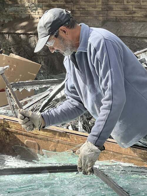Наразі в корпусах №3,4,5 демонтуються пошкоджені рами і склопакети: вивозиться бите скло, утилізуються деревʼяні й металопластикові рами. Рами, що придатні до використання, ремонтуються.