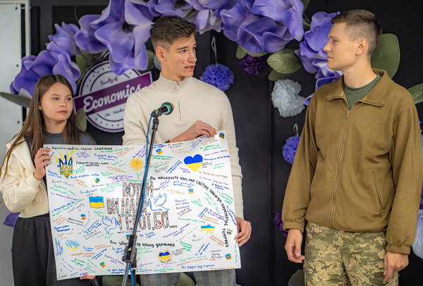 Студентська молодь не забарилася зі словами подяки тим, хто, пройшовши виклики війни, наразі є прикладом стійкості, сили і мужності для всіх нас. Для присутніх воїнів, які своїм досвідом показують, що таке справжня відданість Україні, наші студенти підготували особливі подарунки. Поважним гостям Рада студентів ФЕК презентувала плакат, сповнений щирими побажаннями та словами підтримки.