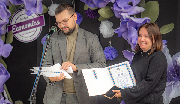 Віддана соціально відповідальна праця студентів факультету економіки ДНУ була відзначена й представником Благодійного фонду «Відновлення України» – заступником голови Ради волонтерів, помічником народного депутата, що очолює розвиток молодіжного руху на національному рівні Микитою Проданцем. Вручаючи Подяку студентській раді економу, він підкреслив, що наш університет сьогодні наочно демонструє, наскільки різноманітним може бути волонтерство. Заслужену відзнаку урочисто отримав в.о. голови Ради студентів ФЕК Артемій Кондратюк. Також партнерську нагороду від благодійного фонду здобула деканеса Тетяна Гринько.