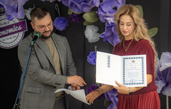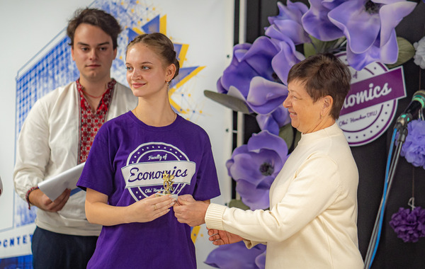 У своїй промові Тетяна Валеріївна, зокрема, відзначила, що молодь університету – не лише активна і творча, а й свідома та відповідальна – завжди готова допомагати тим, хто захищає нашу країну. Про що свідчить і цей благодійний патріотичний розпродаж, організований членами студентської ради факультету економіки. Тому вже за традицією під час проведення ярмарку відзначаються найактивніші студенти. Тих, хто відомий своєю небайдужістю та ініціативністю робити життя рідного факультету яскравішим, нагороджують почесним званням «Зірка економу». Це звання – символ справжнього визнання і подяки. Цьогоріч «Зірками економу» стали троє здобувачів освіти: