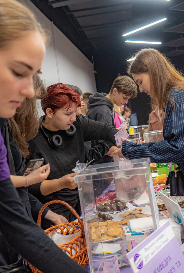 Розважальна програма продовжилася доброчинним розпродажем на потреби ЗСУ. Безпосередньо ярмарок проходив у трьох локаціях: кулінарній (продаж зроблених з любов’ю смаколиків від студентів, викладачів різних кафедр та стейкхолдерів факультету); творчій (унікальні сувеніри та вироби ручної роботи); фотозоні з ростовим псом Патроном – улюбленцем всіх українців, символом відваги та добра). Кожна гривня, передана гостями ярмарку в скриньку БФ «Відновлення України», піде на допомогу нашим Захисникам!