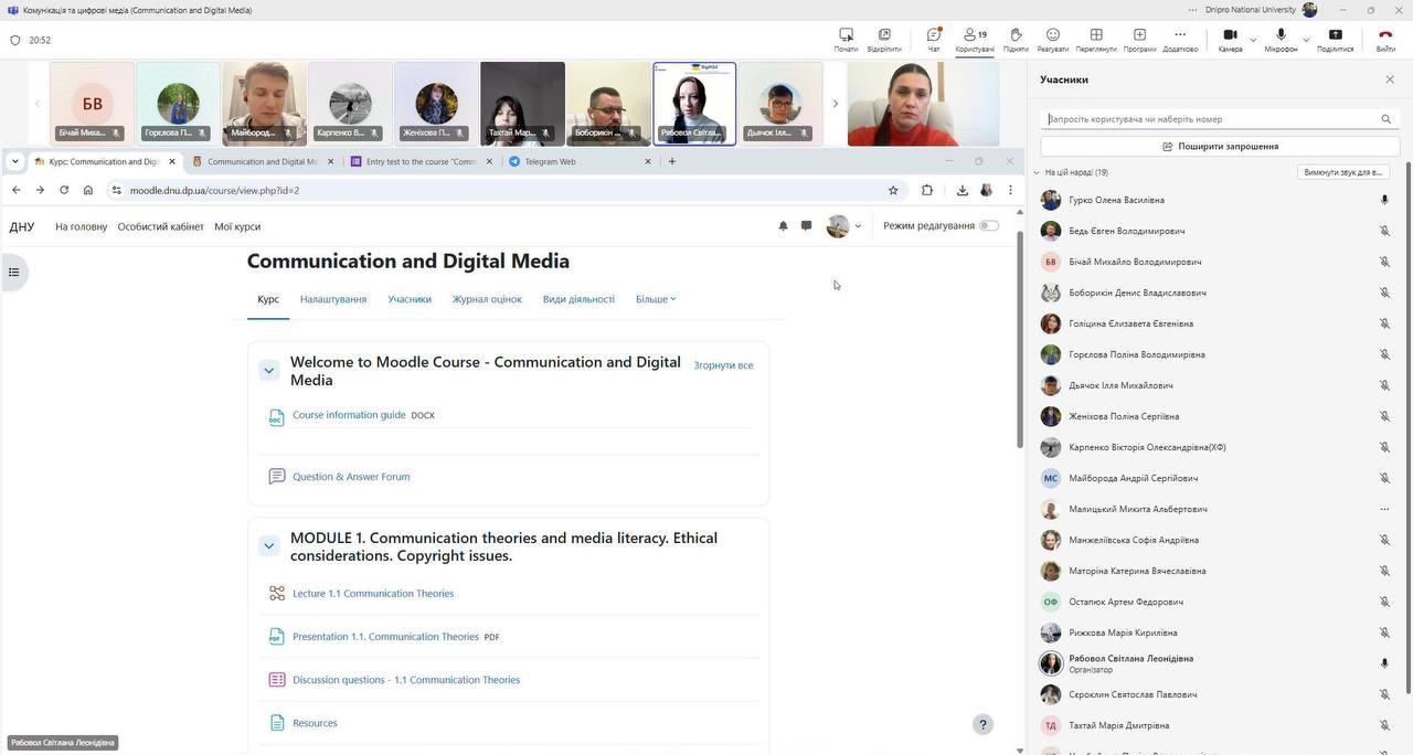 Старт курсу відбувся 6 жовтня. Уже проведено два заняття, під час яких здобувачі активно знайомилися з новими форматами комунікації у цифровому середовищі та ділилися власним досвідом взаємодії в медіапросторі.