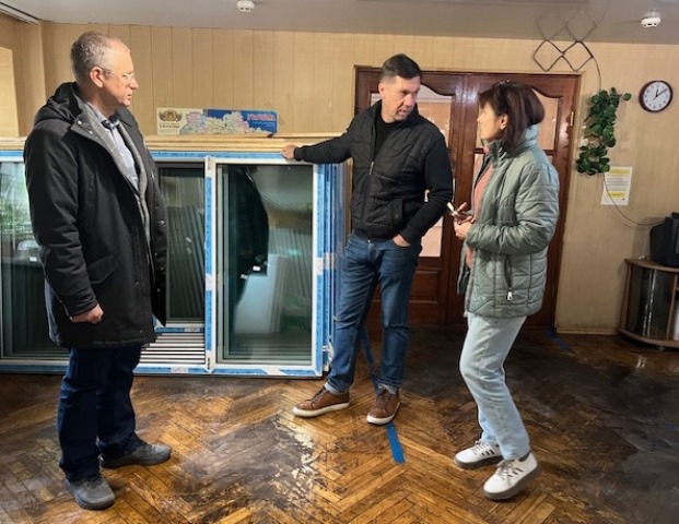 Протягом вихідних вже розпочалася заміна вікон, закритих раніше ОСБ-плитами. Як наголосила Яна Миколаївна, будуть замінені не тільки вікна, що постраждали після прильотів, а й старі, що вже розтріскалися від часу.