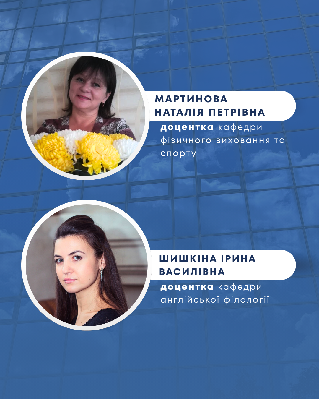 - Мартиновій Наталії Петрівні – кафедра фізичного виховання та спорту факультету медичних технологій діагностики та реабілітації;