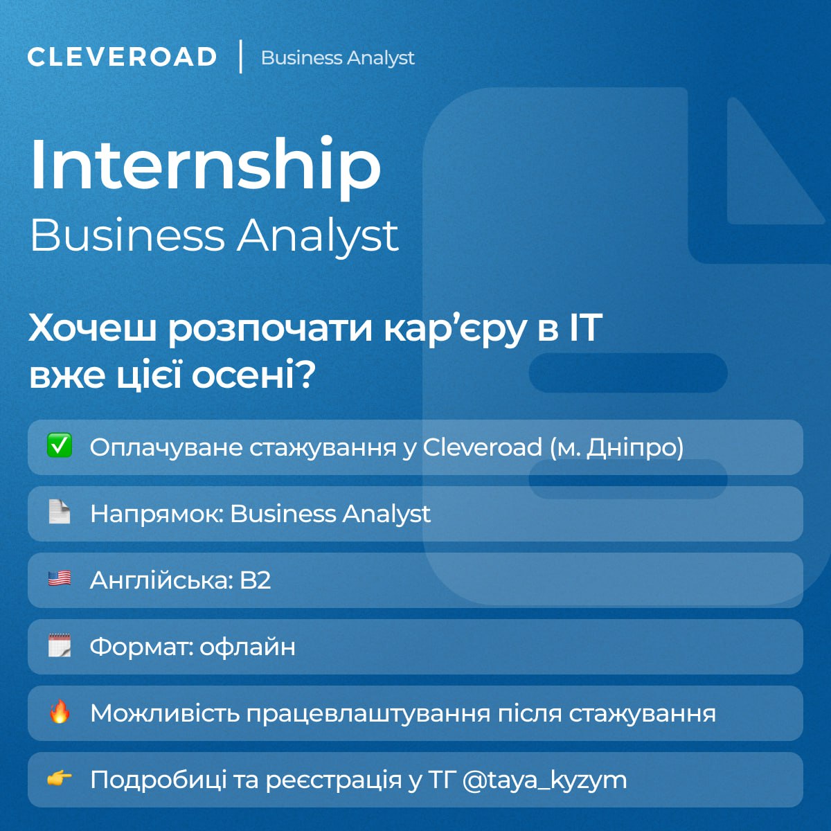Це чудова можливість отримати практичний досвід, попрацювати з реальними проєктами та зробити перший крок у кар’єрі бізнес аналізу.