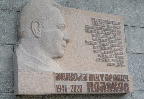 22 жовтня в Дніпровському національному університеті імені Олеся Гончара урочисто відкрили меморіальну дошку колишньому ректору, видатному вченому Миколі Вікторовичу Полякову. Пам’ятний знак встановлений на фасаді головної будівлі ДНУ – навчального корпусу №1, де Микола Поляков працював багато років.