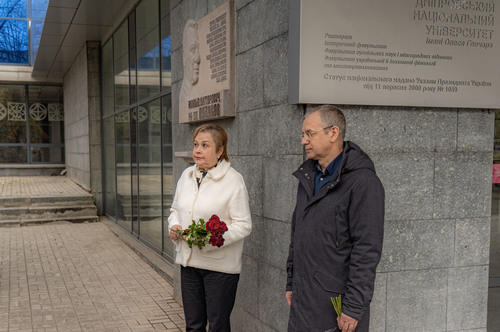 Встановлення меморіальної дошки – це знак пошани університетської спільноти людині, яка віддала багато сил справі освіти й науки. Микола Вікторович Поляков – доктор фізико-математичних наук, професор, член-кореспондент НАН України, лауреат Державної премії України в галузі освіти, повний кавалер ордена «За заслуги». Ректор Поляков зробив багато для осучаснення університету на межі століть: його імʼя тісно пов’язане з оновленням та розвитком університету, модернізацією освітнього процесу, розбудовою наукових шкіл і міжнародних зв’язків. Під його керівництвом ДНУ утвердився як провідний класичний університет країни, відомий далеко за її межами. Віддати належну данину памʼяті ректорові, який 22 роки очолював Alma mater, зібралася численна академічна родина та рідні – дружина Тамара Олексіївна Полякова і скульптор-автор меморіалу Володимир Павлович Небоженко.