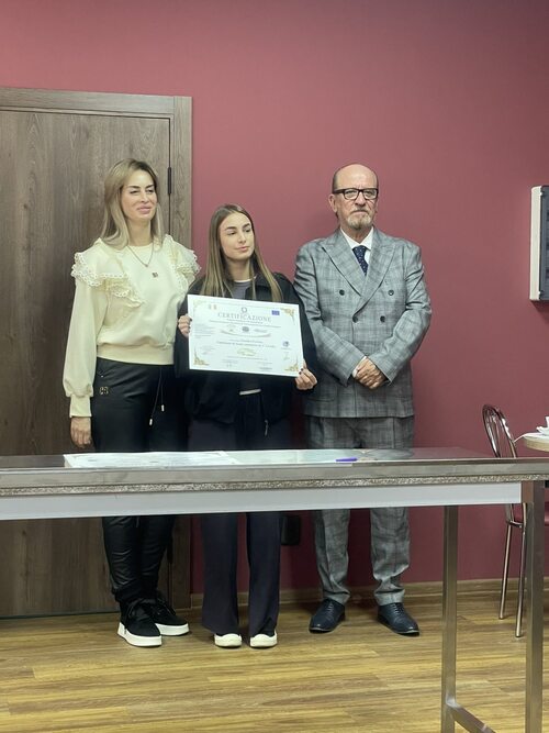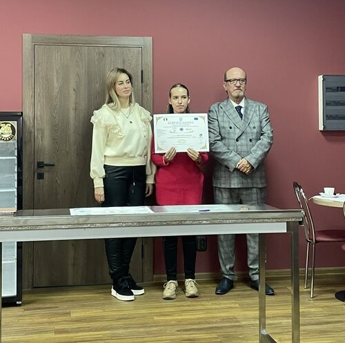 Особливим моментом стало урочисте вручення сертифікатів І та ІІІ рівнів кваліфікації студенткам спеціальності 241 Готельно-ресторанна справа Евеліні Гашко, Анастасії Дігтяренко (група ЕГ-24-1) та спеціальності 242 Туризм Анні Боєвій (група ЕН-22-1), які вже пройшли стажування в Італії. Їхні щирі усмішки, враження та розповіді про роботу у справжніх італійських ресторанах стали найкращим підтвердженням ефективності співпраці.
