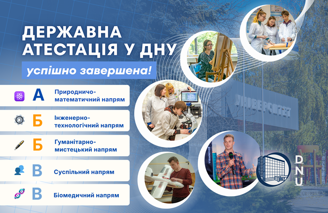 Прикметно, що найвищі атестаційні оцінки держави ДНУ здобув у двох найбільших за обсягом та впливом на розвиток та відновлення України напрямах — природничо-математичному та інженерно-технологічному.