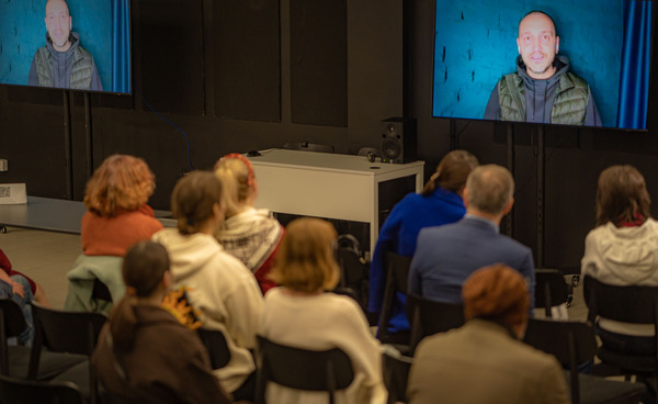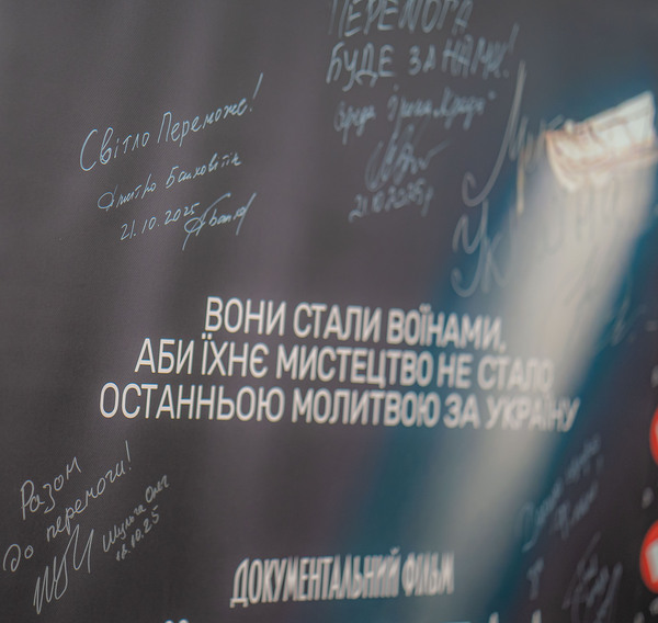 Студенти та викладачі ставили запитання двом присутнім на заході героям кінострічки – етноспівачці з Дніпра, засновниці фольклорно-обрядового театру «Родослав» Наталії Братчик, а також через Zoom фронтмену й засновнику рок-гурту «Тінь Сонця» Сергію Василюку. Вони розповідали про внутрішню роботу зі страхом, який нікуди не зникає, але самоконтроль дозволяє його перетворити мобілізуючу силу, силу дружби та взаємовиручки на фронті, рутинність війни, яка виснажує своєю монотонністю, і тоді на допомогу приходить саме мистецтво.