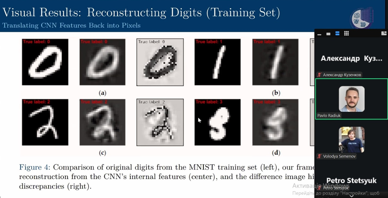 – питанням інтерпретованості штучного інтелекту через відображення матриці переходів від глибинних до інтерпретованих ознак