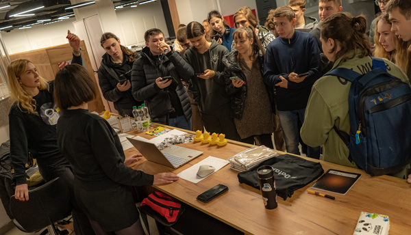 Цьогоріч Дніпровський хаб став ще й осередком живого спілкування, драйву та інтерактиву. Особливий інтерес викликала тематична вікторина QuizVIZ, присвячена історії олімпіади Proggy-Buggy, яка перетворилася на справжній інтелектуальний батл. Переможцями стали представники факультету прикладної математики та інформаційних технологій — Ілля Дьячок, Дмитро Шаталович та Лія Камеко, які продемонстрували не лише ерудицію, а й щиру зацікавленість історією змагання, отримавши за це приємні призи.