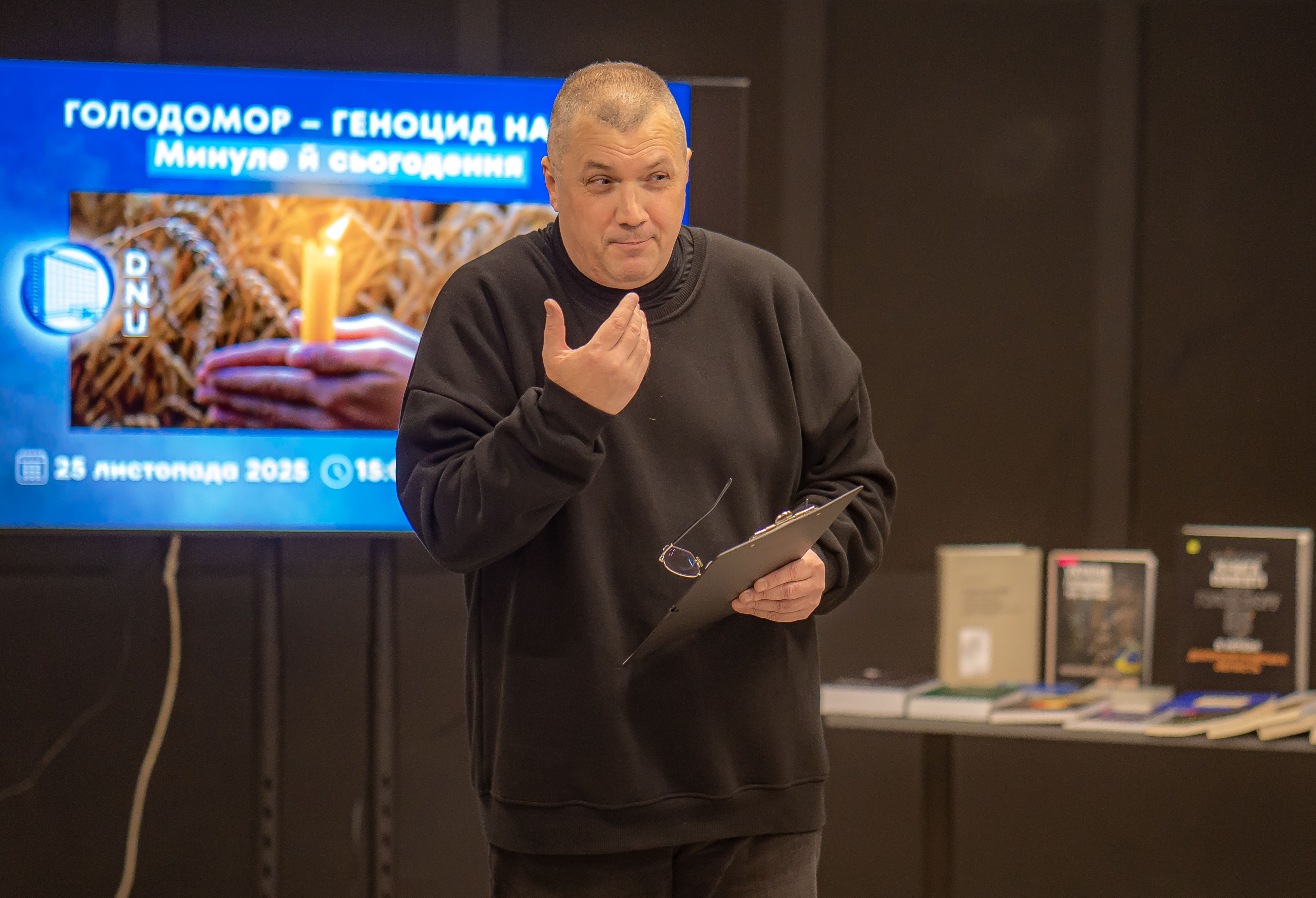 В інформаційному блоці доцент кафедри історії України Олександр Чепурко розповів про стан історіографії дослідження голоду в Україні, джерельну базу й методологію дослідження, концептуальні інтерпретації та оцінки чисельності жертв. Головний бібліограф наукової бібліотеки ДНУ Світлана Бондаренко презентувала наявну літературу з тематики Голодомору, яка містить наукові монографії, публіцистичні видання, художні твори тощо.