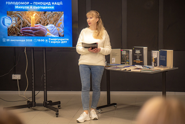 25 листопада Центр гуманітаристики й української мови разом з історичним факультетом, науковою бібліотекою ДНУ та Дніпровським Будинком мистецтв провели тематичну зустріч «Голодомор — геноцид нації: минуле й сьогодення». Ідея заходу мала синтетичний характер і полягала в тому, щоб, по-перше, вшанувати пам’ять загиблих й постраждалих; по-друге, встановити певні паралелі між подіями початку 30-х рр. ХХ ст. та сучасними викликами, пов’язаними з російсько-українською війною; по-третє, знайти витоки сили, мужності, стійкості українського народу. Все це передбачало встановлення атмосфери довіри й спілкування між учасниками, що вдалося здійснити через обговорення питання чим є Голодомор для кожного. Концептуально зустріч складалася з інформаційного та інтерактивного блоків.