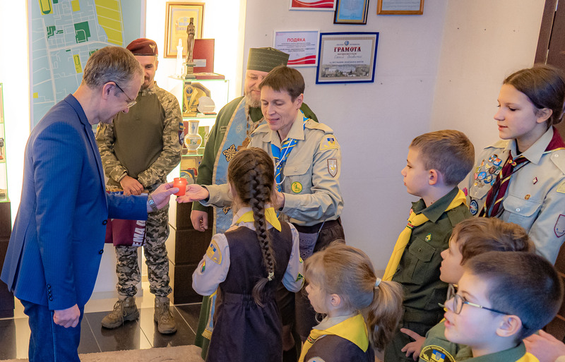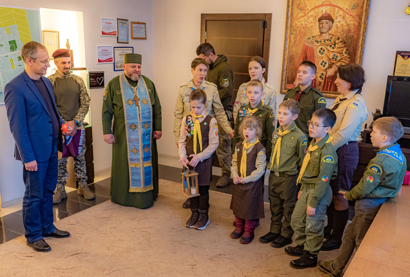 – У ці непрості часи нам як ніколи важливо зберігати у своїх душах тепло і сяйво. Тож нехай цей Вифлеємський вогонь стане живим символом Світла, який ми так щиро, з любов'ю і вірою оберігаємо, – сказав Сергій Іванович і в нагороду за виконання благородної місії пригостив юних пластунів солодощами.
