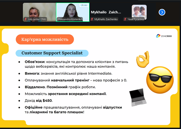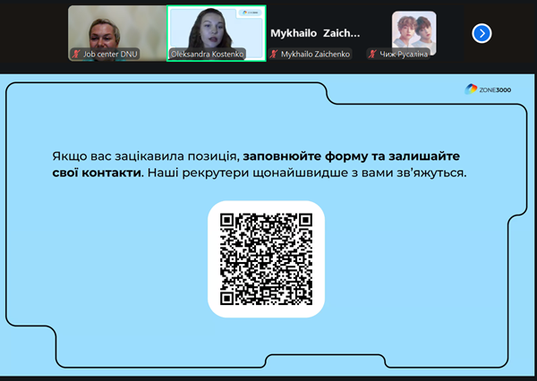 Секретами інтерв’ювання кандидатів на посаду та можливостями кар’єрного старту із студентами Дніпровський національний університет імені Олеся Гончара поділилася міжнародна ІТ-компанія ZONE 3000