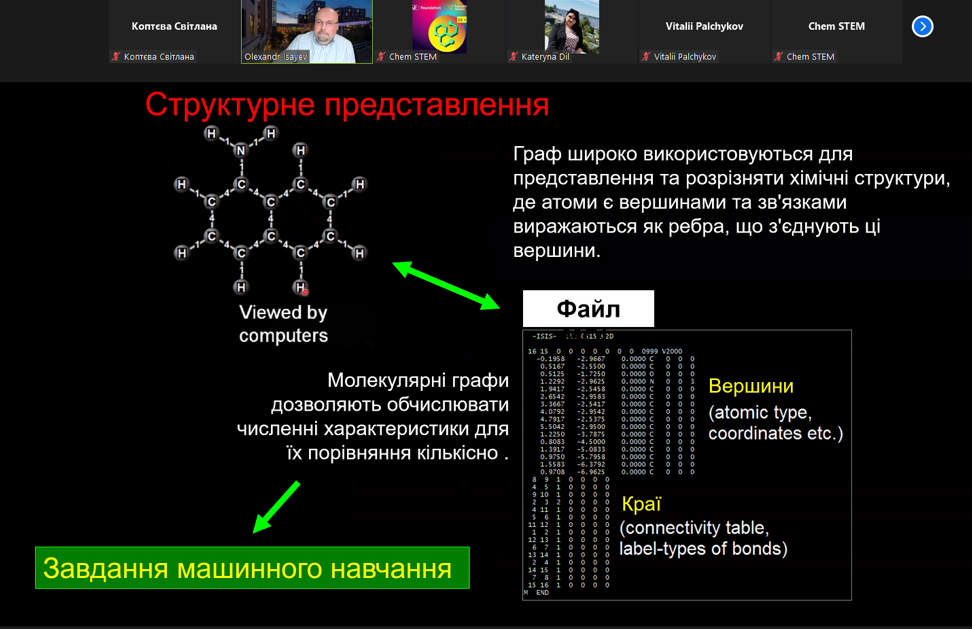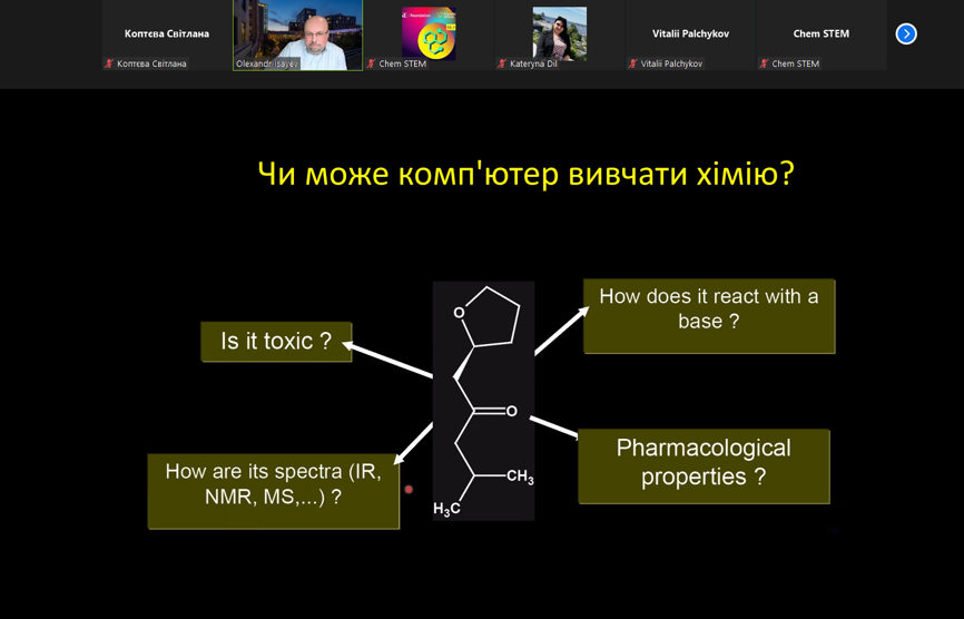 Для академічної спільноти Alma mater, студентів, аспірантів та викладачів хімічного факультету, та школярів-учасників «Клубу юних дослідників» професор Ісаєв підготував пізнавальну лекцію «Прискорення квантової хімії за допомогою машинного навчання та штучного інтелекту». Цікавість підігрівав той факт, що тематика доповіді – надсучасна, що називається, з переднього краю науки. Автор намагався максимально адаптувати матеріал.