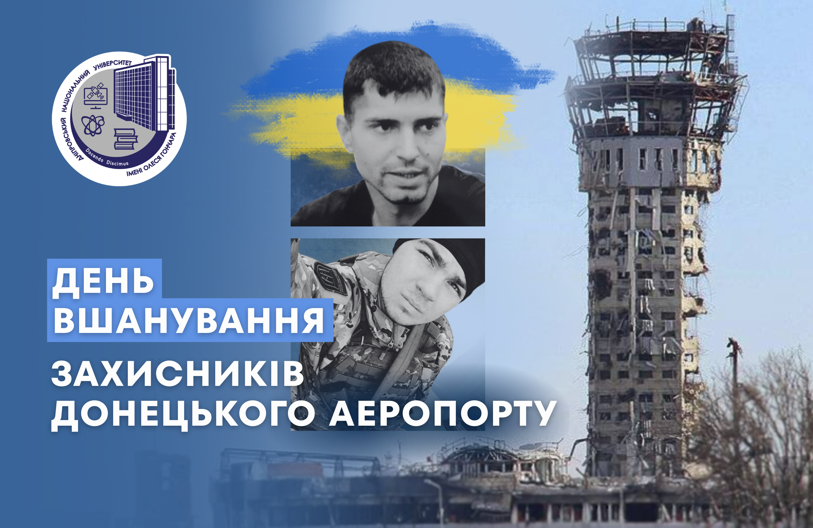 Для родини Дніпровського національного університету імені Олеся Гончара унаочненням звитяжного подвигу захисту стратегічного об’єкту та справжнім прикладом самопожертви стали: випускник кафедри політології факультету суспільних наук і міжнародних відносин Сергій Петров та студент юридичного факультету Влад Казарін. Наші «кіборги».