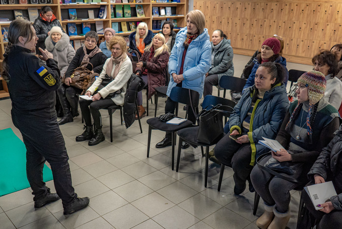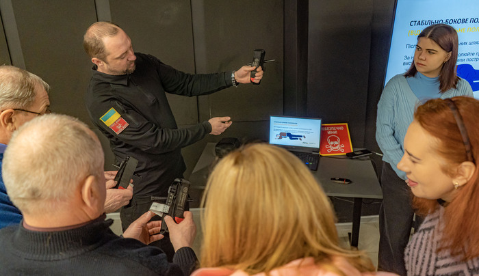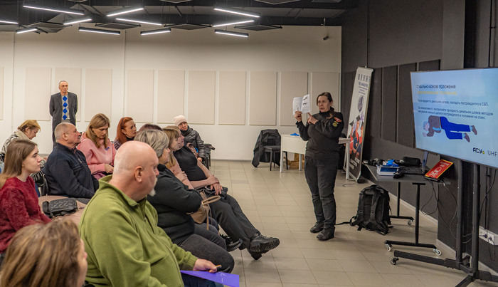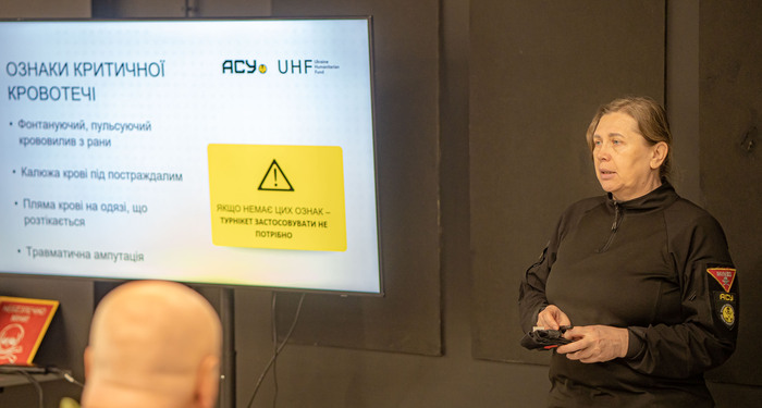 Інструктори з домедичної допомоги та вибухонебезпечних предметів Євген Іваницький і Валентина Бикова розказали і показали, які правильні дії стануть запорукою збереження життя постраждалого. Так, слухачі дізналися алгоритм дій для якісного первинного огляду і швидкої оцінки стану постраждалого. Багато уваги приділялося ознакам критичної (масивної) і вузлової кровотечі та механізму накладання кропоспинного турнікету при пораненні. Окрім того, додатково розглянули способи зупинки кровотечі за допомогою імпровізованого джгута, методом прямого тиску чи тампонування рани.