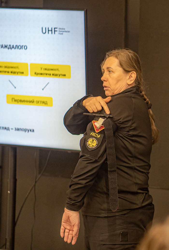 Наостанок університетські співробітники почули експертні поради щодо самодопомоги при пораненні.