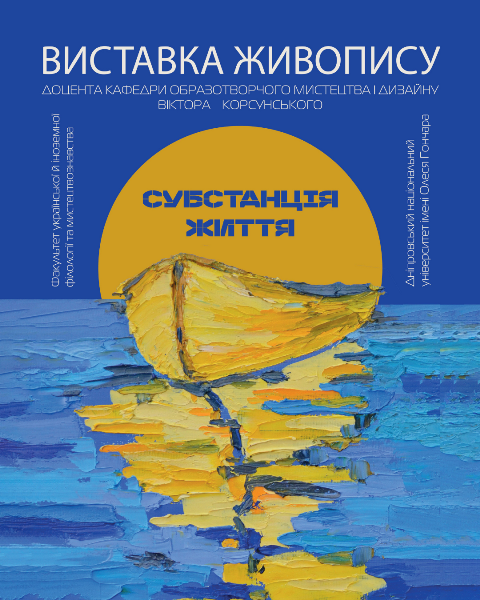 31 березня 2026 року факультет української й іноземної філології та мистецтвознавства і кафедра образотворчого мистецтва та дизайну запрошують вас для вас у простір мистецтва та натхнення – на персональну виставку живопису «Субстанція життя»!