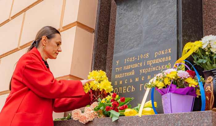 Покладання квітів до погруддя Олеся Терентійовича стало символом поваги до постаті письменника, чия творчість утверджує духовні цінності, гуманізм, національну гідність і відповідальність за збереження культурної спадщини. Такі заходи сприяють осмисленню ролі митця в історії української літератури та підкреслюють значення його творчості для сучасного покоління.