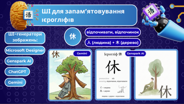 У рамках Весняної сесії учасники презентували групові проєкти, де продемонстрували власний досвід або досвід своїх університетів у використанні штучного інтелекту. Представниця ДНУ Катерина Русакова працювала разом із докторкою педагогічних наук, старшою науковою співробітницею Інституту цифровізації освіти НАПН України Анною Яцишин. Анна та Катерина представили проєкт «Використання технологій штучного інтелекту в освітніх практиках», який охопив дві теми: «ШІ у викладанні китайської мови» (К. Русакова) та «Підвищення кваліфікації вчителів» (А. Яцишин). Катерина представила практичні кейси, як за допомогою додатків із модулями ШІ та програм генеративного ШІ можна урізноманітнити викладання китайської мови та покращити процес її вивчення, зокрема під час навчання онлайн. Були продемонстровані можливості таких засобів, як HelloChinese, TonePerfect, Skitter, NotebookLM, ElevenLabs, Gemini, ChatGPT, Microsoft Designer, Genspark AI. Усі підходи, представлені у проєкті, Катерина перевірила на практиці та регулярно застосовує під час викладання дисципліни «Основна іноземна мова (китайська)» в межах реалізації освітньої програми «Китайська та англійська мови і літератури».