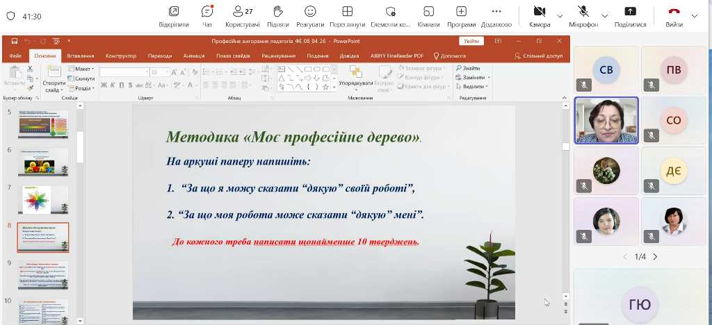 – застосовували методику «Моє професійне дерево», щоб візуалізувати свої сильні сторони, ресурси та професійні цілі;