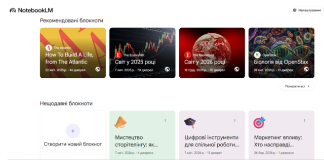 Ключовим об'єктом вивчення став інноваційний сервіс NotebookLM від Google Labs. Для ДНУ впровадження таких інструментів є стратегічно важливим, адже цей сервіс працює на базі моделі Gemini та забезпечує принципово новий рівень академічної доброчесності. На відміну від універсальних чат-ботів, NotebookLM оперує виключно завантаженими джерелами – PDF-файлами, матеріалами з YouTube, Google-документами чи презентаціями. Це дозволяє викладачам університету уникати проблеми «галюцинацій» ШІ та працювати лише з перевіреними даними.