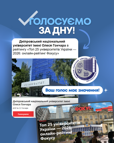 ТОП 25 університетів України-2026: ДНУ в онлайн-рейтингу ФОКУСУ