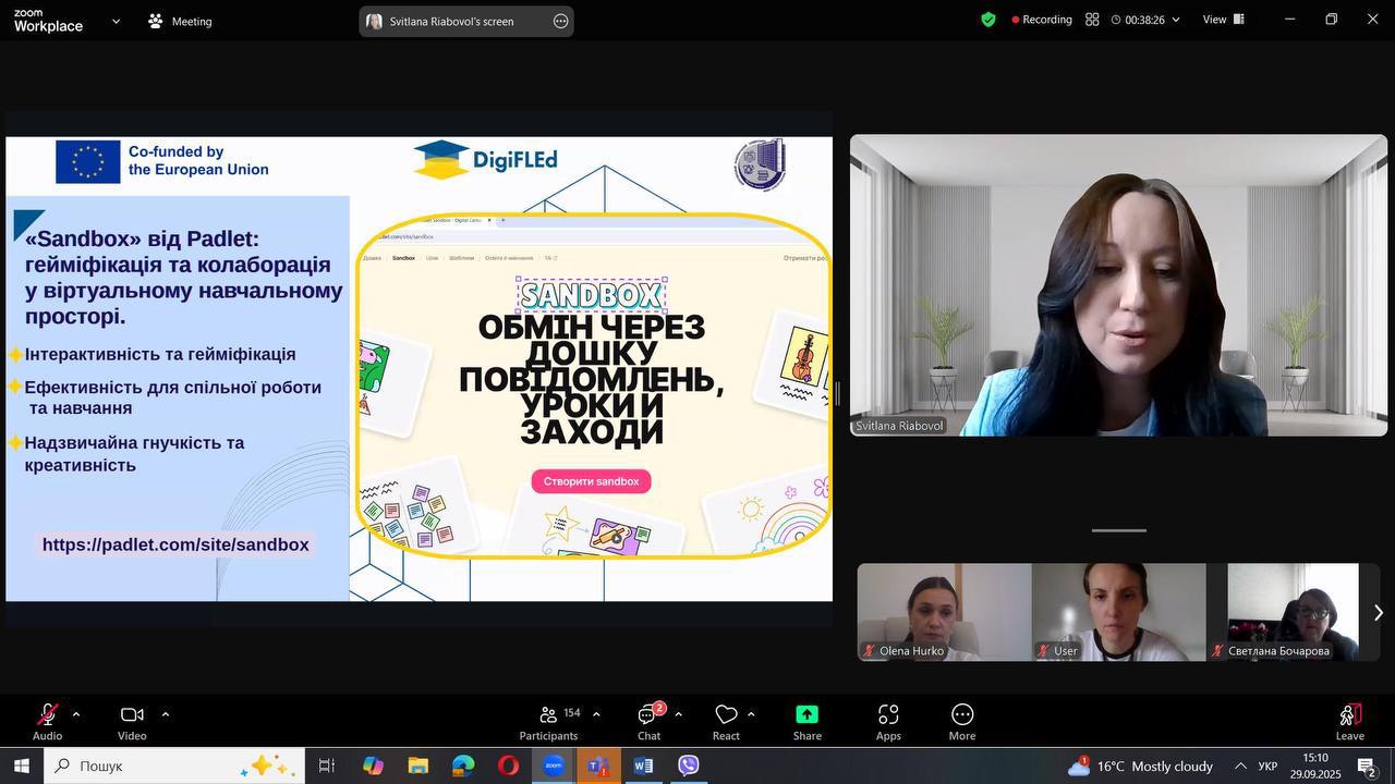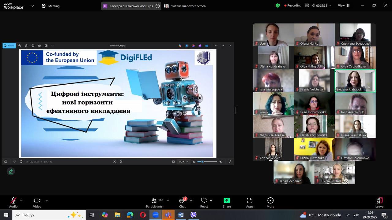 29 вересня 2025 року відбувся вебінар «Цифрові інструменти: нові горизонти ефективного викладання», організований кафедрою англійської мови для нефілологічних спеціальностей у межах проєкту DigiFLEd «Модернізація університетських освітніх програм з іноземних мов на основі інтеграції з інформаційними технологіями». Захід зібрав понад 260 учасників з усіх регіонів України та став потужним поштовхом до змін у викладацькій практиці!
