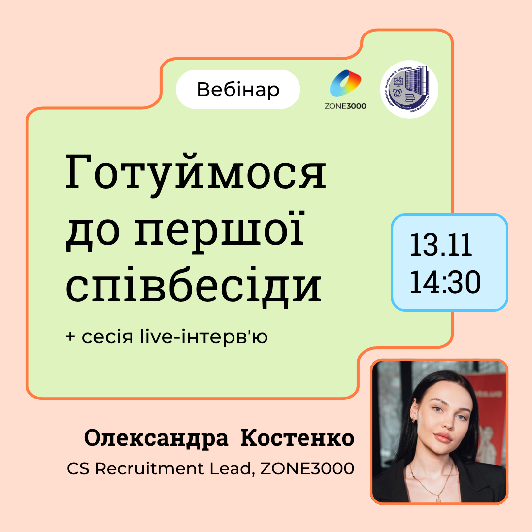 Запрошуємо студентів та випускників ДНУ, які шукають роботу або готуються вперше вийти на ринок праці, відвідати вебінар «Готуймося до успішної співбесіди» від ZONE 3000.