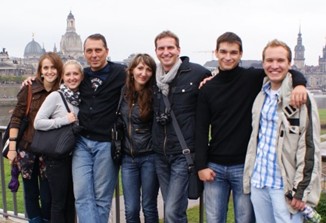 Зліва направо: Ольга Діденко, Катерина Протасова, професор Олексій Джусов, Олена Мавропуло, Дмитро Бібіков, Володимир Каменський і німецький студент